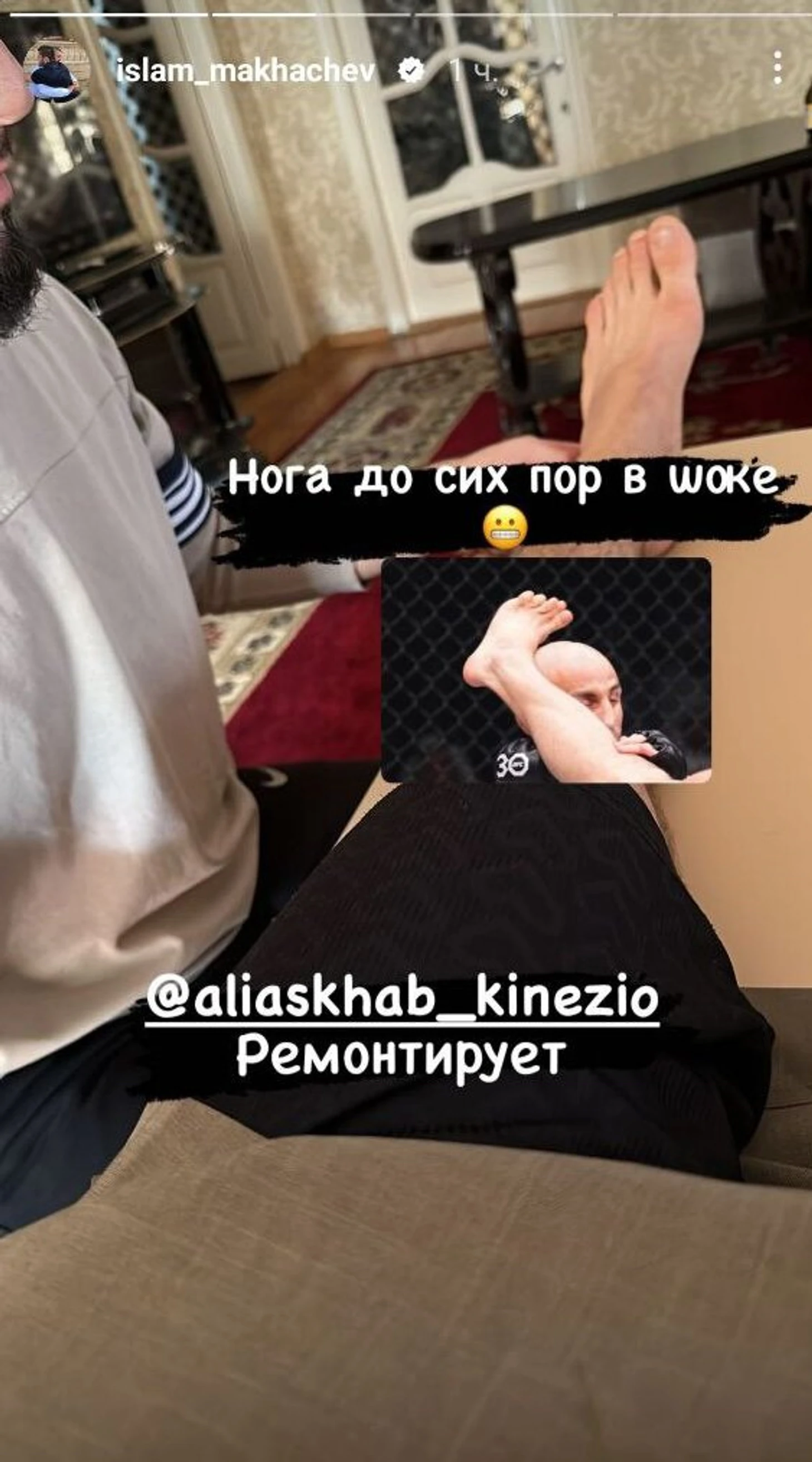 «Нога до сих пор в шоке», – написал в соцсетях чемпион UFC Ислам Махачев.
