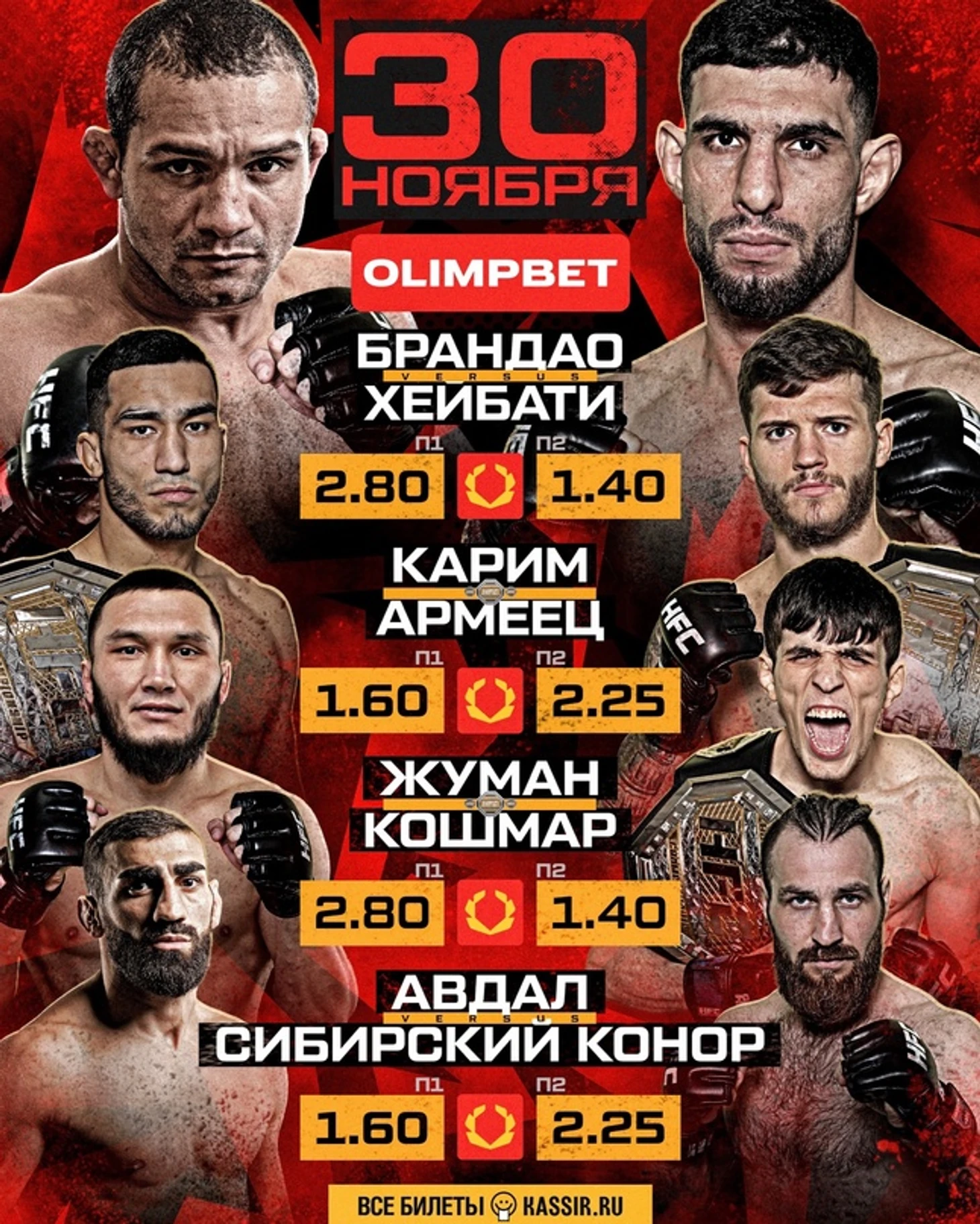 Кард Hardcore MMA Брандао — Хейбати: кто дерется 30 ноября, весь список бойцов