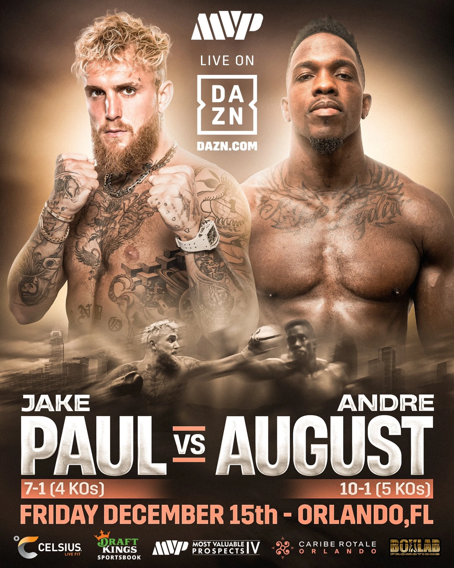 В субботу 16 декабря пройдет поединок в первом тяжелом весе между Джейком Полом и Андре Огасте. Событие будет проведено на арене «Caribe Royale Orlando» в Орландо, штат Флорида, США.