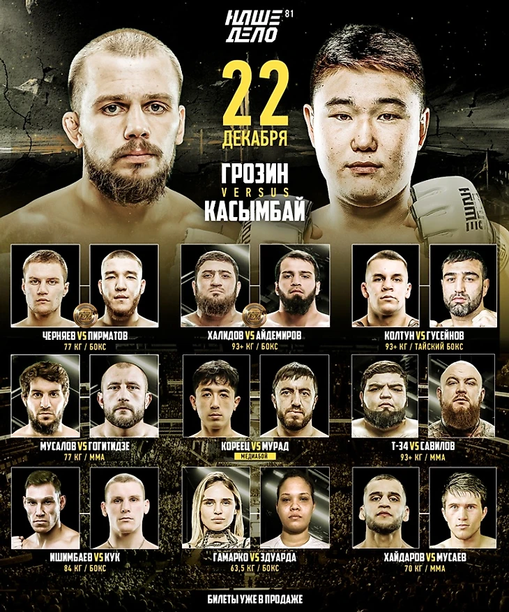 Кард Наше Дело: Грозин — Касымбай 26 декабря 2023: где смотреть и во сколько начало боев