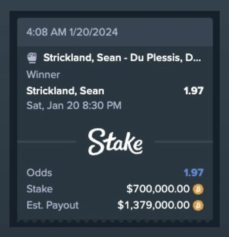 Если Стрикленд защитит титул чемпиона среднего веса, то Дрейк выиграет $1,379 млн.