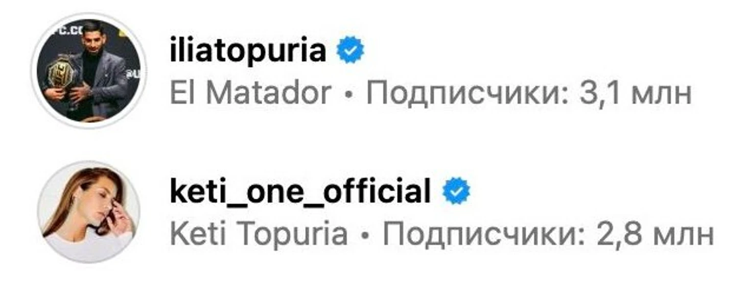 До поединка с Александром Волкановски на странице Илии Топурии было 2,2 млн подписчиков – на 600 тысяч меньше, чем у Кэти Топурии. Сейчас у чемпиона UFC на 300 тысяч подписчиков больше, чем у певицы. Их число превысило 3,1 млн.