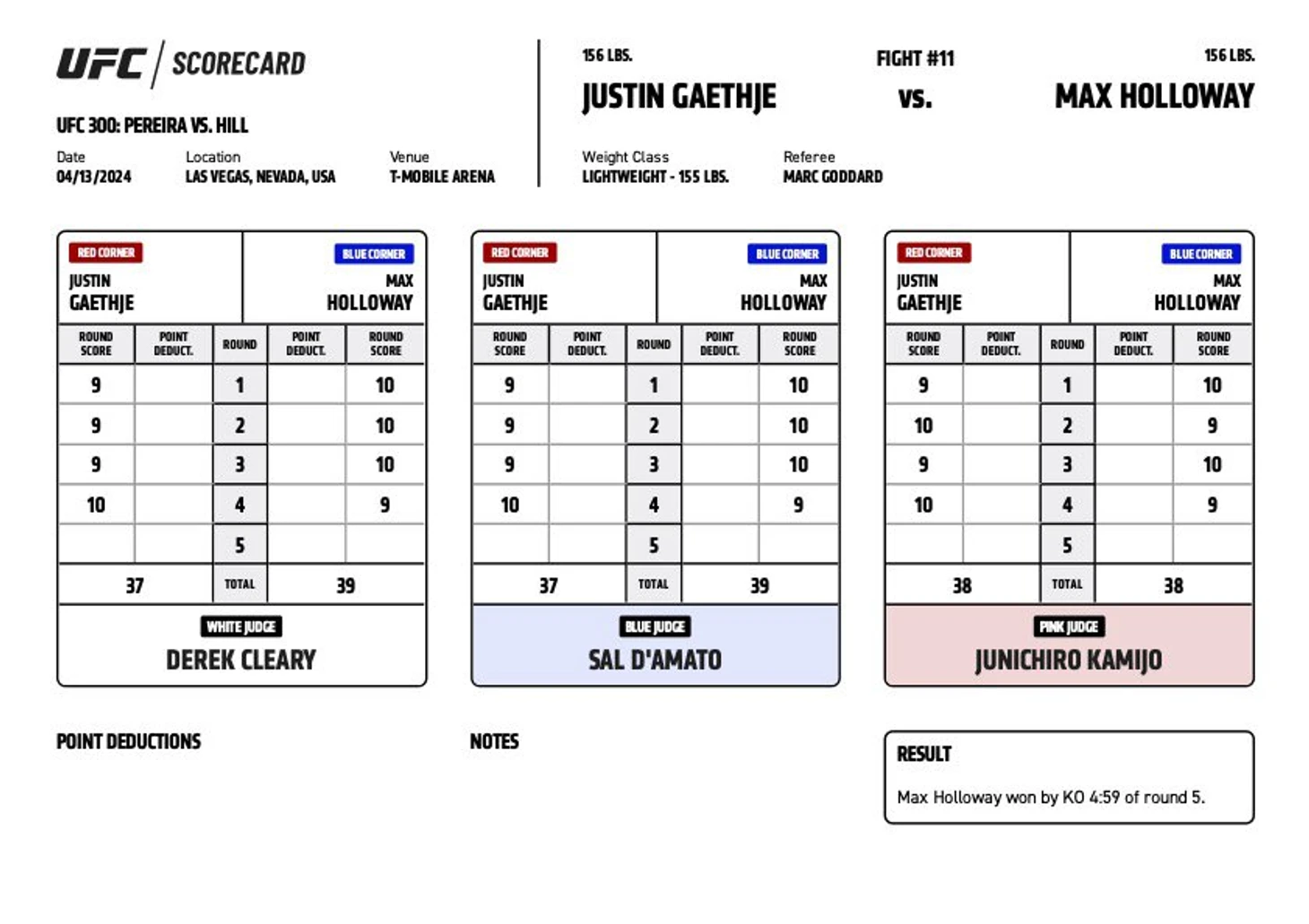 Опубликованы судейские записки поединка Джастина Гейджи и Макса Холлоуэя.