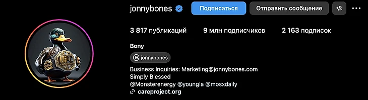 В профиле Джонса в инстаграме теперь утка с поясом UFC.