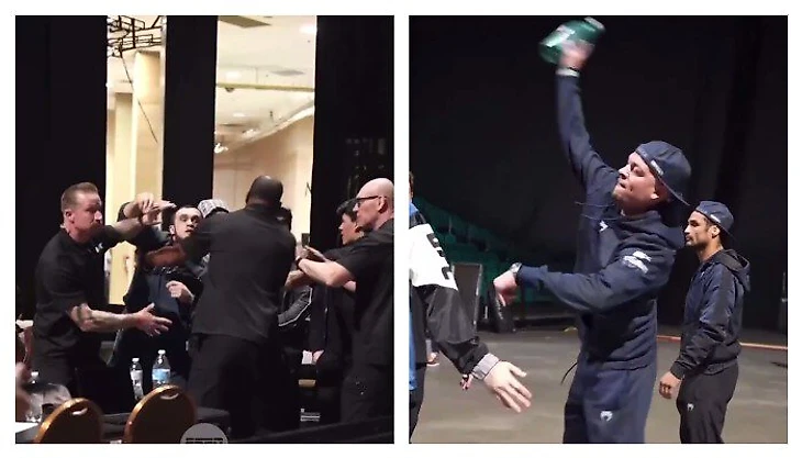Нейт Диаз и команда Махачева кинули друг в друга бутылки в Лас-Вегасе