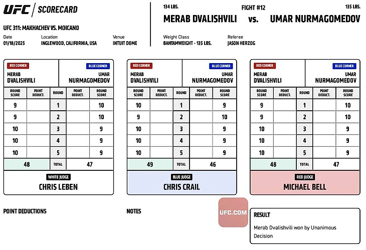Появились судейские записки боя Двалишвили и Нурмагомедова.