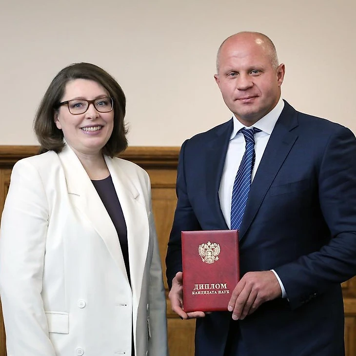 Емельяненко защитил диссертацию в декабре прошлого года. Тема работы – воспитание духовно-нравственных качеств личности спортсменов в смешанном боевом единоборстве на учебно-тренировочном этапе.