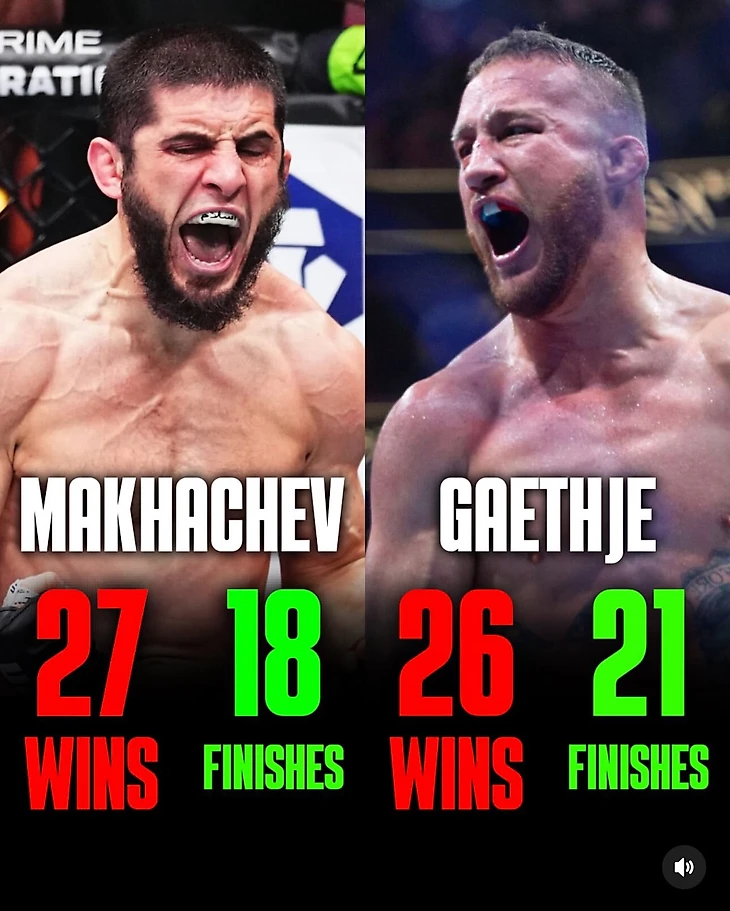 В пример Абдель-Азиз привел картинку, на которой указано, что у Ислама Махачева 27 побед (18 досрочных), а у Джастина Гейджи – 26 (21).