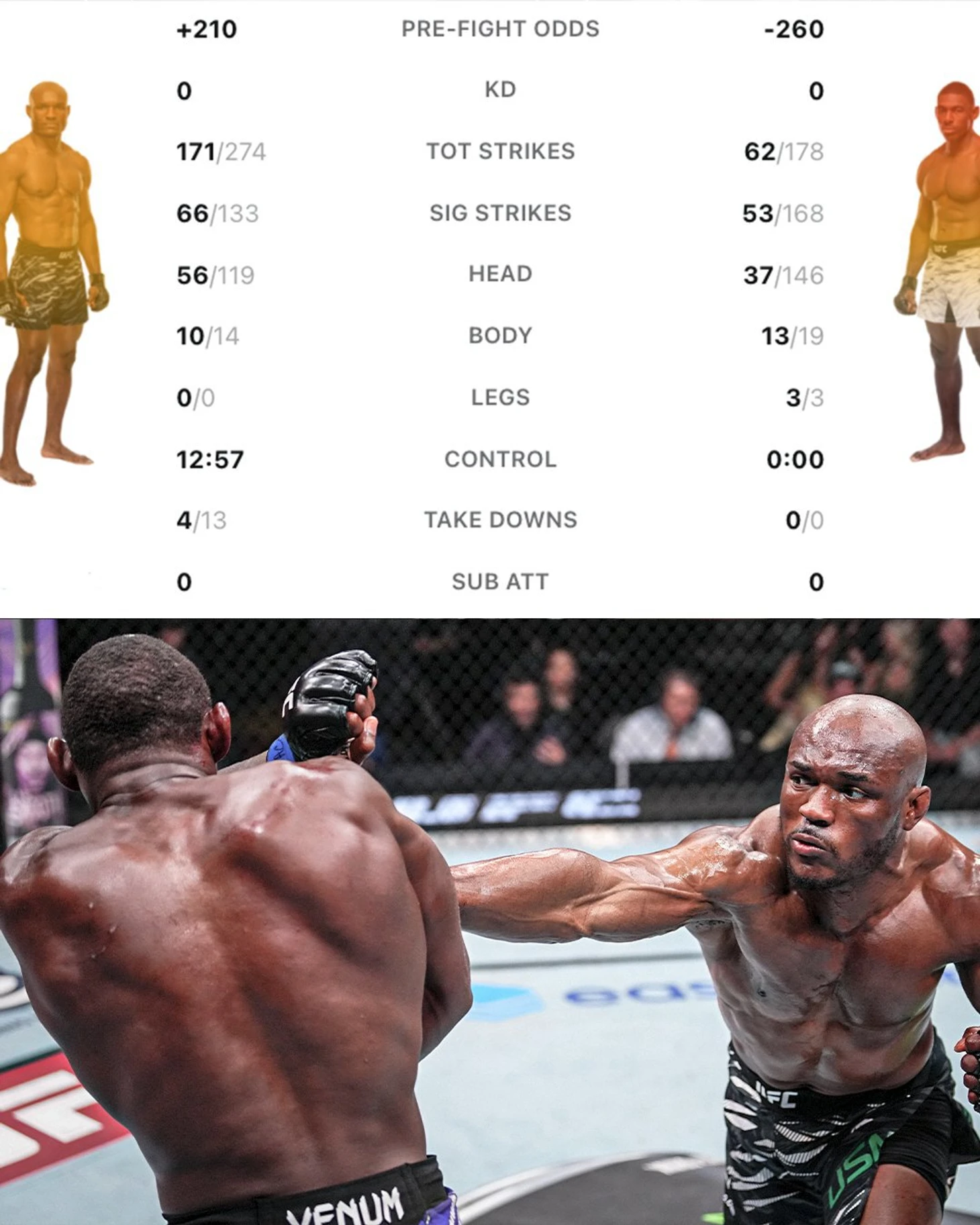 Статистика боя Усман – Бакли: 171 – 62 по ударам и 13 минут контроля против нуля – в пользу Камару