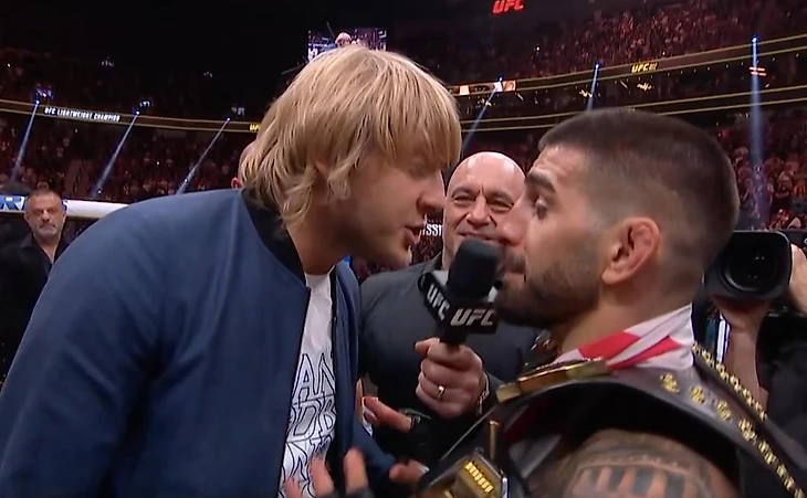 После боя в октагон вышел боец UFC Пэдди Пимблетт и провел стердаун с Топурией.