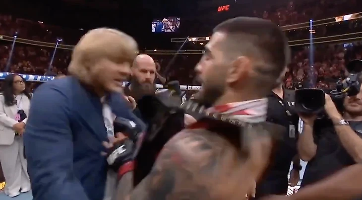 «Посмотри на меня. Я порву тебе очко, ты, маленькая сучка. Положу свои яйца на твой лоб», – сказал чемпион UFC Илия Топурия Пэдди Пимблетту в октагоне после поединка с Чарльзом Оливейрой.