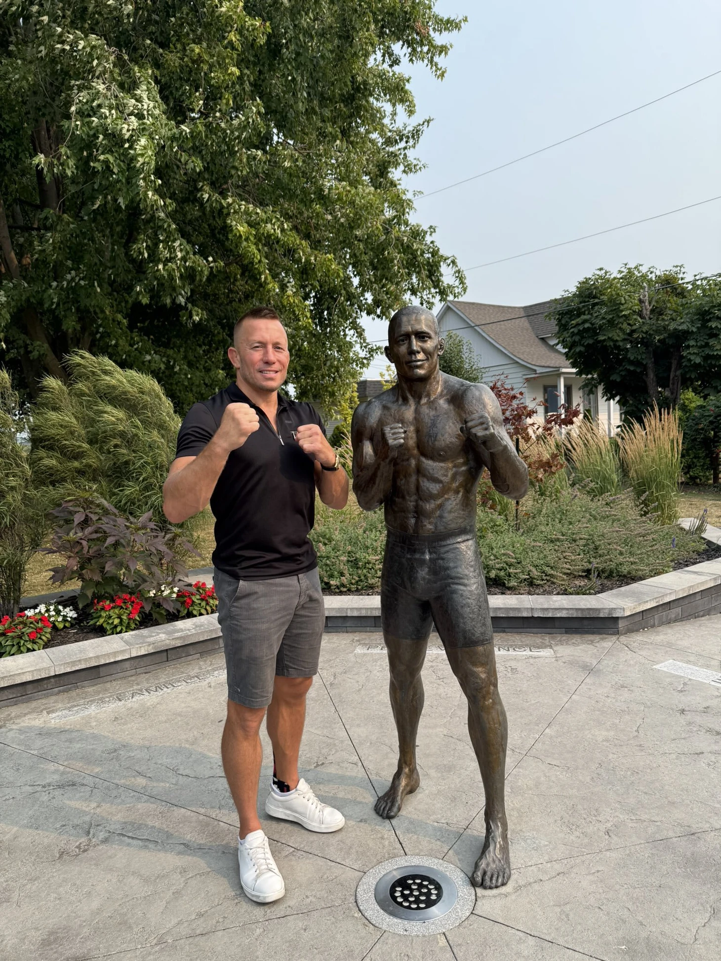 «Мы действительно со временем уменьшаемся или это только со мной так?» – написал экс-чемпион UFC Жорж Сен-Пьер, прикрепив фотографию со своей статуей.