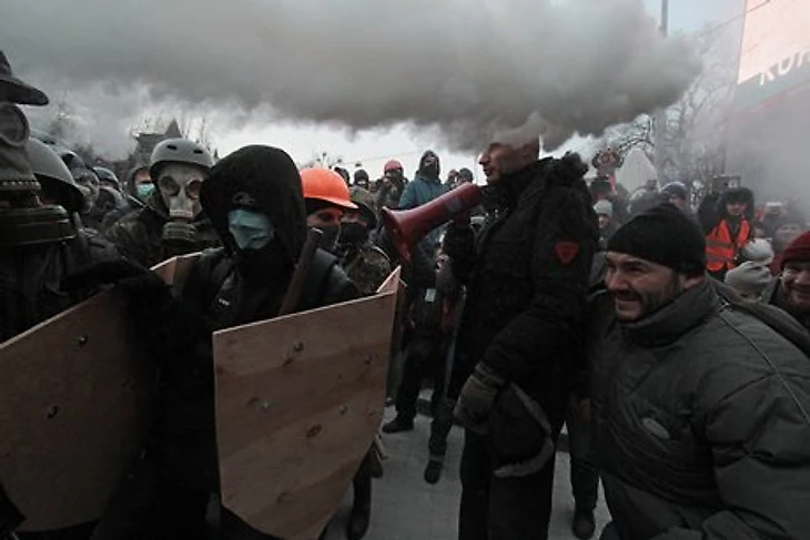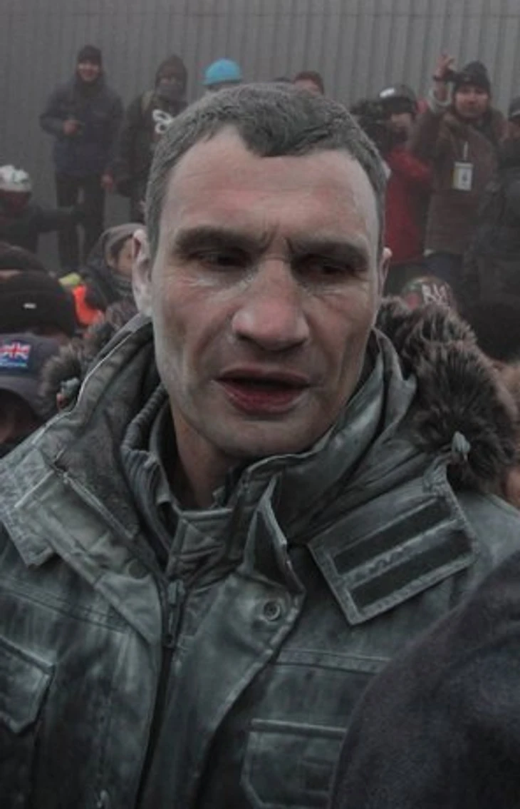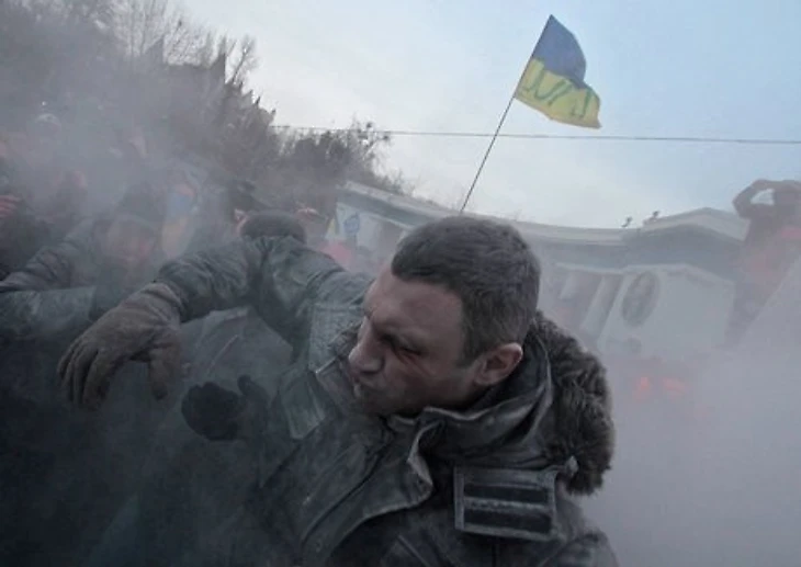 Лидер украинской политической партии «Удар», чемпион мира по версии WBC в супертяжелом весе Виталий Кличко был облит из огнетушителя во время беспорядков в центре Киева.