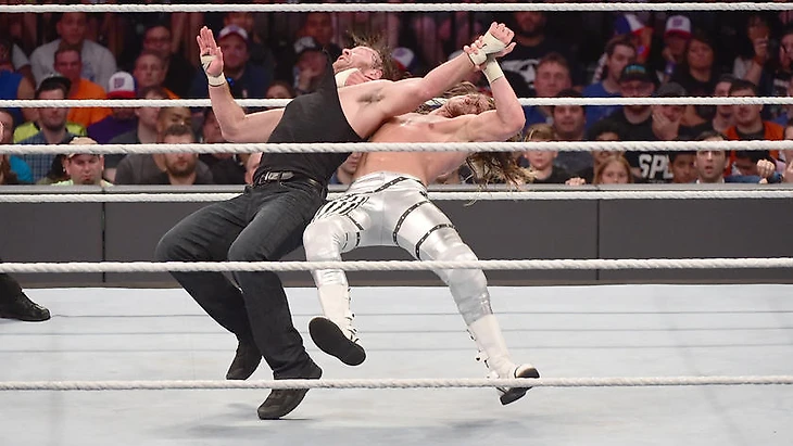 Данный поединок с гордостью представляли Шейн Макмэн и Дэниел Брайан, искренне радуясь за обоих рестлеров. Дольф и Дин в самом начале едва не поцапались до гонга, но судьям удалось растащить их и официально начать бой. Видимо, оба рестлера растратили все свои эмоции в той неудачно потасовке, так как дальше нас ожидали пятнадцать минут медлительного и незрелищного рестлинга, от которого хотелось заснуть как можно быстрее. К техническому исполнению претензий нет, но было видно, что пресловутой химии между рестлерами нет: И Эмброуз, и Зигглер поочерёдно атаковали, вырываясь из любых ситуаций. Чемпион смог восстать после "феймосера", "зиг зага" и "супер-кика", в то время как претенденту хватило одних "грязных делишек", чтобы вновь стать штатным супер-джоббером и распрощаться с мечтами о титуле WWE.