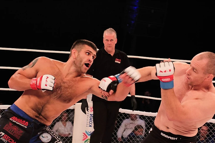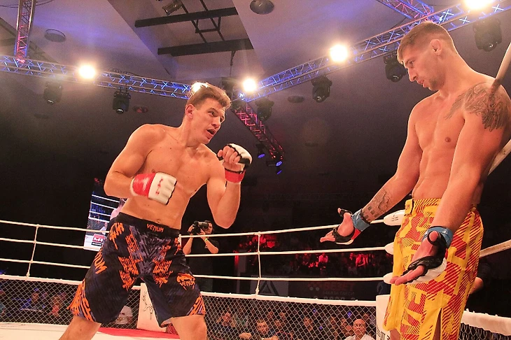 Надо сказать, что ребята из «MMA Sever» за время проведения 8 турниров «Parma Fights» поднаторели не только в организации, но и поднабили неплохой рекорд в боях. Пятеро представителей команды были «делегированы» для участия в этом знаковом для их широт событии. Это и «проспекты», ведомые на паритетных началах с клубом SechPro Вадим «Плохой Санта» Малыгин (6-2-0) и Андрей Селедцов (5-3-0), запомнившийся ярким поединком со Штефаном Пюцом. Малыгин имел все шансы закончить бой досрочно в первом раунде, француз Бенкаси успел в начальном отрезке боя даже побывать на настиле рейджа. Но Моктар смог найти в себе силы и переломить ход боя в свою пользу. Как итог, победа нокаутом, ударом колена, во втором раунде. Интерес к бою Селедцова был еще выше – бои больших парней почти всегда производят впечатление. Представитель Германии Рене Хоппе, проводящий всего лишь второй официальный бой по профи, четко следуя геймплану и используя свои сильные стороны (Рене является четырехкратным чемпионом Германии по вольной борьбе), раз за разом переводил северянина в партер. Победа единогласным решением судей осталась за немцем.