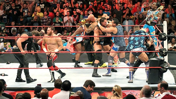 Сам поединок получился куда менее захватывающим и запомнился лишь финальной частью, когда рестлеры на несколько секунд появлялись на ринге, проводили приём, а затем вылетали вслед за своей жертвой от рук следующего счастливчика. На этом празднике жизни хуже всего пришлось Эпико, который и пал после "хелува кика" и "бадабум шакалаки" в исполнении Энцо.