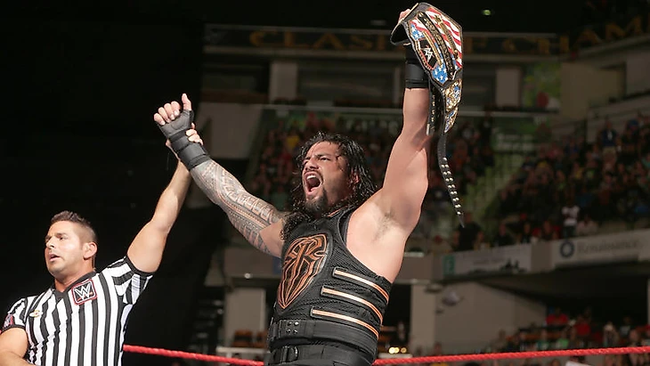 6. Роман Рейнс победил Русева (ч.) в матче за Чемпионство США.