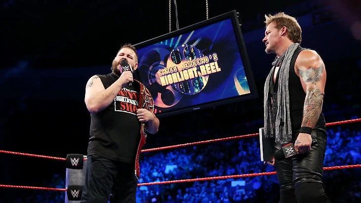 После победы над Сэми Зейном окрылённый Крис Джерико провёл очередной выпуск "Хайлайт рил шоу", на который пригласил своего лучшего друга и Чемпиона Вселенной WWE Кевина Оуэнса. Тот похвалил убранство вокруг ринга, обнял друга и принялся чихвостить всех и вся: для начала он прошёлся по Огайо, не забыв и про Дина Эмброуза. Затем поддержал почин Джерико, который отметил высокую травматичность Роллинса, и также поиздевался над ним.