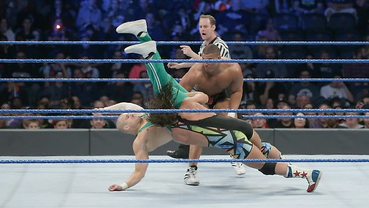Абсолютно идентичную победу, что и "Американ Альфа", одержали сыновья Рикиши над легендарными представителями командного дивизиона. "Хэдбэнгерс" смогли лишь несколько мгновений повладеть инициативой, после чего были беспощадно выпилены.