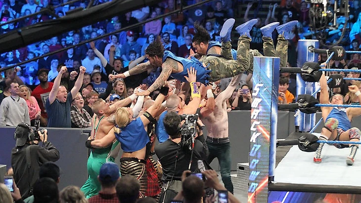 Следующим было командное побоище с целью проверки восьмерых из десяти трибутов, что представят SmackDown в это воскресенье на Survivor Series. Матч был, как будто, списан из учебников по рестлингу, потому что в нём мы увидели грамотную передачу тэгов, хорошее взаимодействия двух и более рестлеров в ринге, обязательный обмен финишерами на любой вкус в конце и победу тех, кто и должен был победить, учитывая состав "мешков" в противоположном углу.