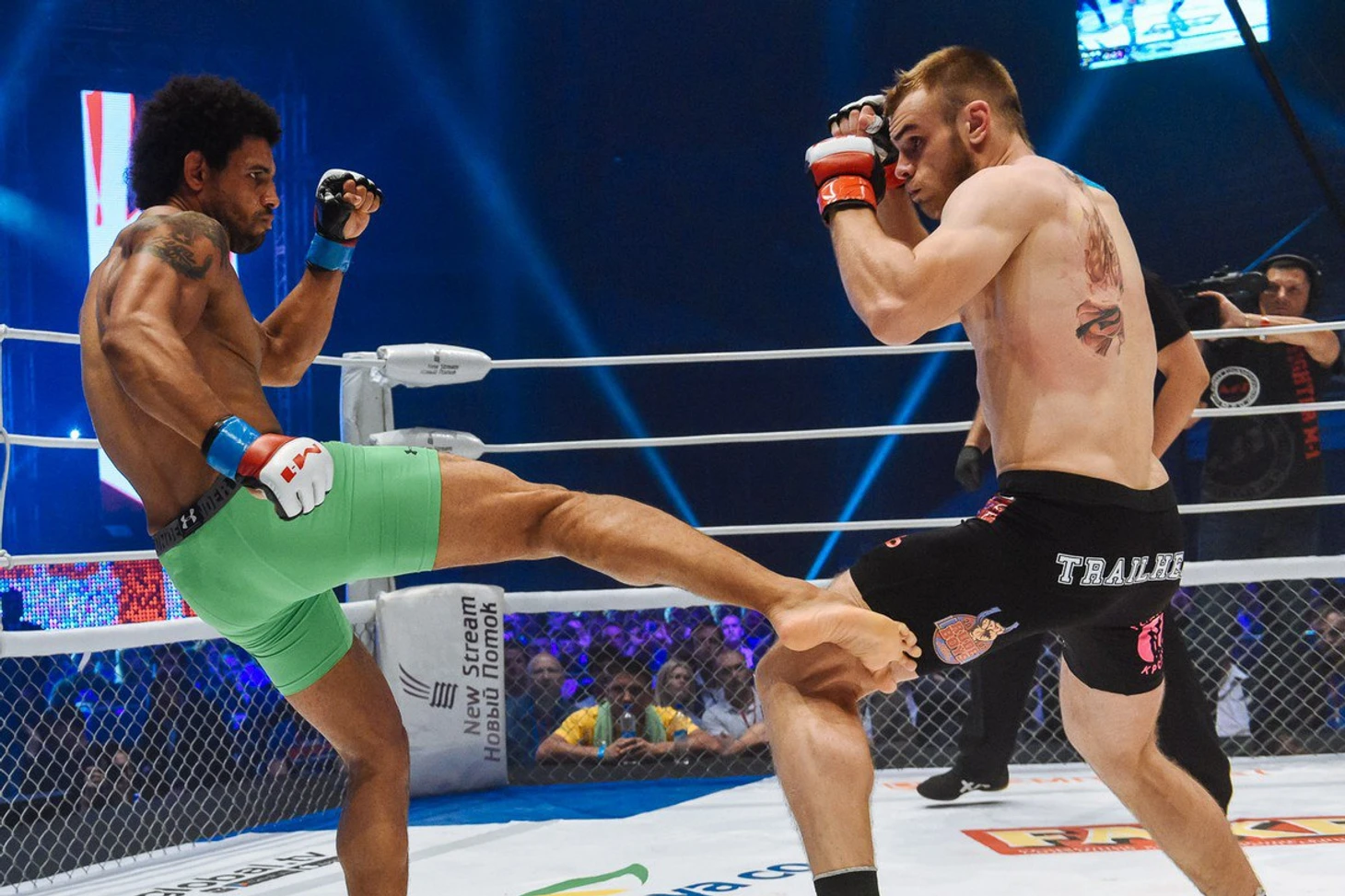 На самом деле по-разному. Хочется что-то придумать всегда с изюминкой, чтобы было мне по душе и публике, это что касается выхода. А по поводу интервью – люди ведь интересуются нами не только как бойцами, а как личностями. Если человек переживает за меня в бою – он имеет право знать, кто я такой в реальной жизни. Поэтому если ты выходишь на такой уровень, то должен соответствовать и уметь давать интервью в том числе. Необязательно трешток использовать, но быть интересным и вести диалог с публикой нужно!
