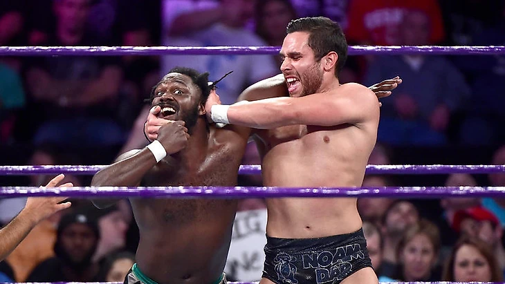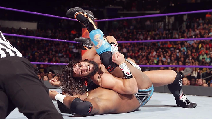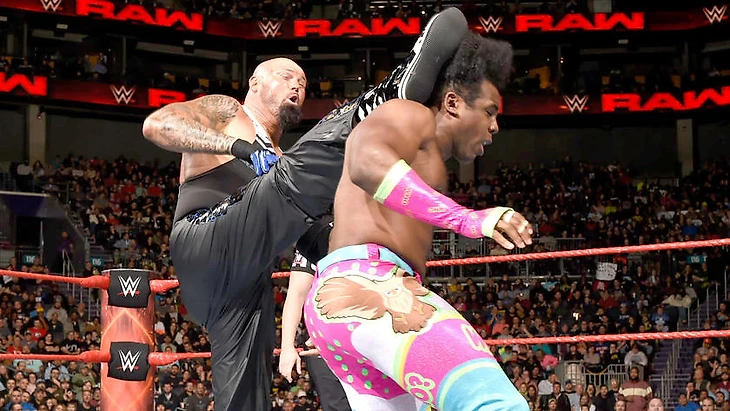 Чем ближе рекорд всех времён, тем тяжелее даются чемпионам титульные защиты. Перед матчем они напомнили, что всего 17 дней отделяют их от вписания своих имён в летопись WWE, и вчера вечером им предстояло сделать ещё один шаг. Вот только бравые ребята из "Клуба" решительно не желали быть подстилками, в виду чего устроили настоящий ад для Ксавье Вудса, который безостановочно принимал и получал удары на свою голову и тело. Лишь небольшой отрезок с выходом Биг И скрасил эту ситуацию, но затем всё пошло по второму кругу. Впрочем, рестлинг всегда предполагает, что любая случайность может повлиять на исход поединка, и Вудсу хватило банально зареверсировать сворачивание в ответное действие, что и привело к очередной успешной титульной защите.