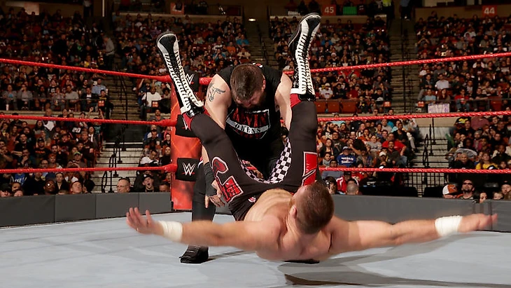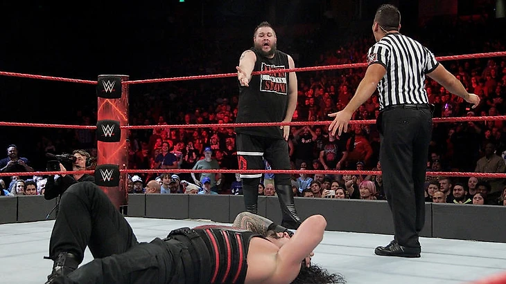 Вернувшийся на ТВ гигант с первых минут прочно завладел инициативой под одобряющие вскрики Чемпиона Вселенной. Бывшему напарнику Роллинса по "Руководству" удалось попотеть "архитектора" , пока тот смог подобрать ключик к успеху. Главным моментом стали три прыжка с верхних канатов, когда колено прилетало прямиком в голову Биг Шоу, а затем и попытка провести "педигри". После реверса Оуэнс зачем-то выскочил на апрон ринга с призывом добить Роллинса, но сам получил "чоукслэм", после чего Шоу послал весь этот цирк к чертям, проиграв по отсчёту. Ну а Кевину сверху ещё и "педигри" прилетел в качестве поощрения.