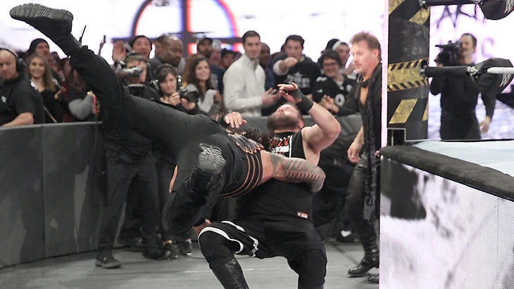 6. Кевин Оуэнс (ч.) победил по дисквалификации Романа Рейнса в матче за Чемпионство Вселенной WWE.