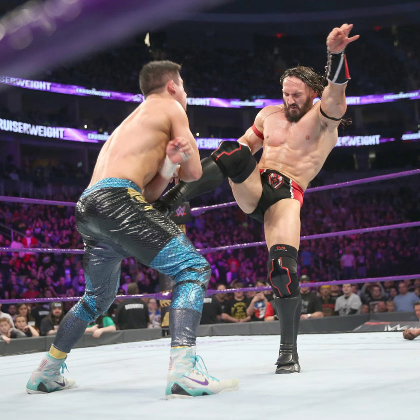 После гонга внезапно зазвучала музыка Невилла, который не только совершил своё возвращение, но и присоединился к дивизиону полутяжей. Вот только радость его друга Рич Суонна была недолгой, так как британец напал и на чемпиона, и на ТиДжей Пёркинса, совершив свой официальный хилтёрн. Лишь насытив свою жажду крови, Невилл покинул ринг, демонстрируя всем ярость и гнев в глазах.