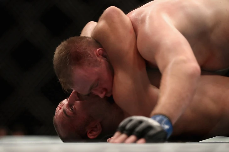 Финикс, Аризона. Вечер боев UFC Fight Night 103. Физически сильный чех Виктор Пешта прошел в гард Алексея Олейника и навалился сверху. Идеальная позиция для умелого борца. Олейник обвил руками шею оппонента, а потом положил ладонь на собственный бицепс. После Алексей аккуратно и ловко просунул вторую руку под горло оппонента. Пешта сдался через несколько секунд. Виктор выглядел ошалевшим и мало что соображающим из-за недостатка кислорода. Победа Олейника редким в ММА приемом под названием «удушение Иезекиилем».