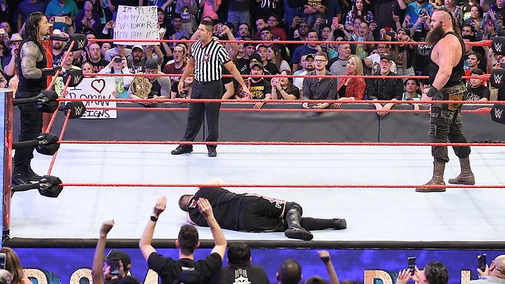 Мощнейший "пауэрслэм" от Строумэна только восстановил "статус кво", как на арене зазвучала музыка Романа Рейнса. Самоанец сполна отомстил за вмешательство Брона в его матч на Royal Rumble, не забыл влепить дежурный "гарпун" Кевину Оуэнсу, а затем покинул ринг под недовольство публики.
