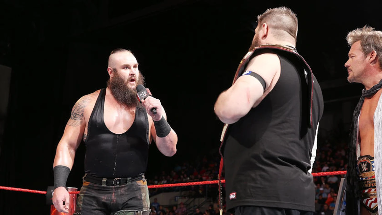 Открывали вчерашнее шоу неразлучные канадские друзья-чемпионы Крис Джерико и Кевин Оуэнс. Естественно, чемпион Вселенной WWE начал свою речь с того, что он якобы доказал всем и всё своим поединком с Романом Рейнсом, попутно провозглашая себя единственным и неповторимым. Затем последовала череда комплиментов в сторону друга и переда слова ему же. Y2J не смог промолчать и похвастался своим рекордом пребывания во всех Королевских битвах, а также попросил называть его человек-61 минута, что моментально ворвалось в тренды мирового твиттера. Внезапно идиллию нарушил Брон Строумэн, который потребовал свой тайтл-шот на Чемпионство Вселенной. На резонный вопрос, мол с какого это неба тебе должен упасть матч за пояс, он показал видео, на котором Оуэнс давным-давно обещал тайтл-шот громиле, если тот поможет разобраться с Романом Рейнсом (поправочка: тогда речь шла о еженедельнике). Подстриженный и помолодевший Мик Фоли не упустил возможности вновь насолить канадцам и таки подтвердил этот поединок.