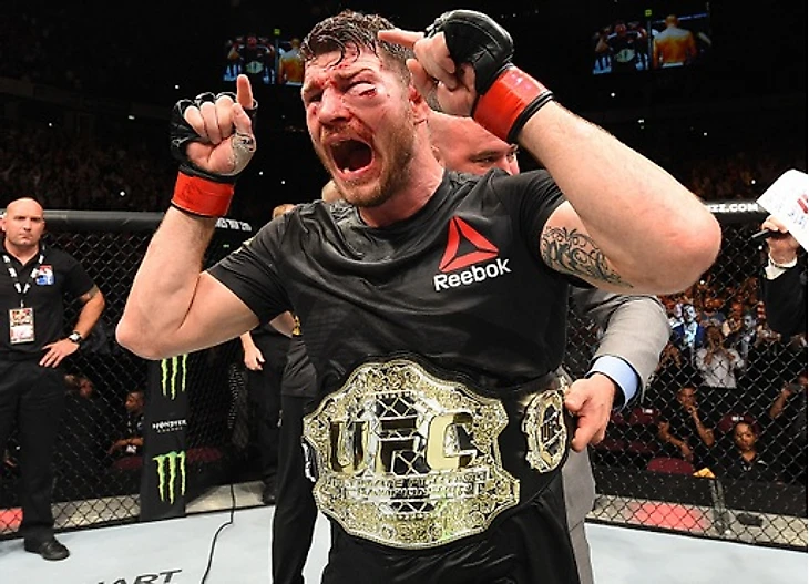 Накаутировав Люка Рокхолда, Майкл "Граф" Биспинг выигрывает титул в среднем весе на UFC 199.