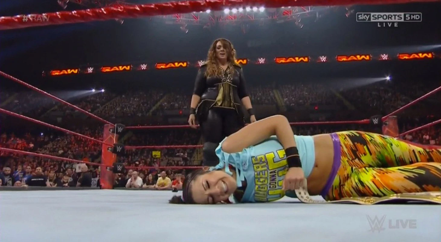 Речь Блисс прервала Микки Джеймс, которая также пополнила ростер RAW. Как только Джеймс собралась поднятся на ринг, ее атаковала Найа Джекс. Найа поднялась на ринг и атаковала всех, кроме Блисс, которая быстро смылась за пределы ринга. Найа вновь подняла титул чемпионки RAW среди женщин над головой и бросила его в сторону избитой Бэйли.