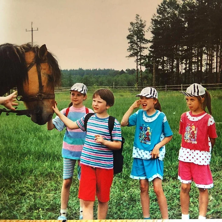 Йоанна Енджейчик (крайняя справа) вместе со своей сестрой-близняшкой (вторая справа) и друзьями детства.