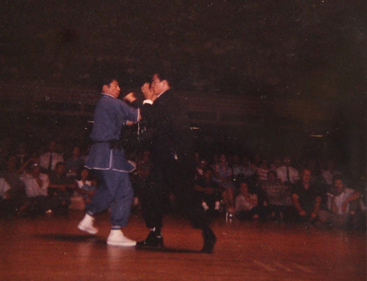 Летом 1964 года Брюс Ли сопровождал гонконгскую актрису Дайану Чанг Чунг-вен («Китайскую Мэрилин Монро») в ее рекламном туре по западному побережью США для поддержки ее последнего фильма. Это привело их в кинотеатр Сан Синг, расположенный в самом сердце Чайна-таун Сан-Франциско. Естественно, Брюс не мог упустить такую возможность, чтобы не выступить со своей демонстрацией, которая привела в ярость представителей китайских боевых искусств в Сан-Франциско.