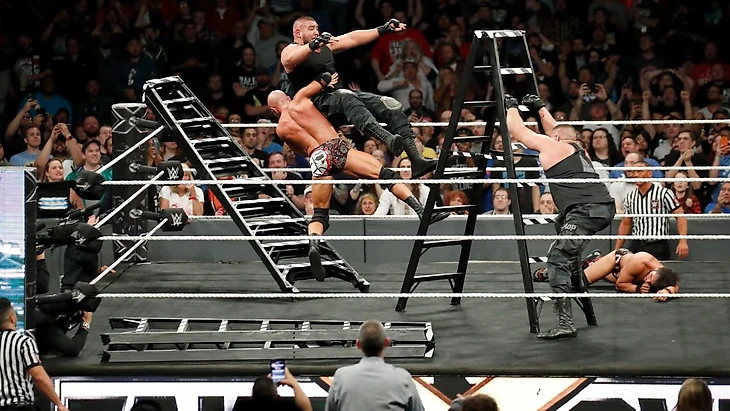 V. АВТОРЫ БОЛИ (ЭЙКАМ И РЕЗАР) (ч) ПРОТИВ #DIY (ДЖОННИ ГАРГАНО И ТОММАЗО ЧАМПА), ЛЕСТНИЧНЫЙ МАТЧ ЗА КОМАНДНОЕ ЧЕМПИОНСТВО NXT.