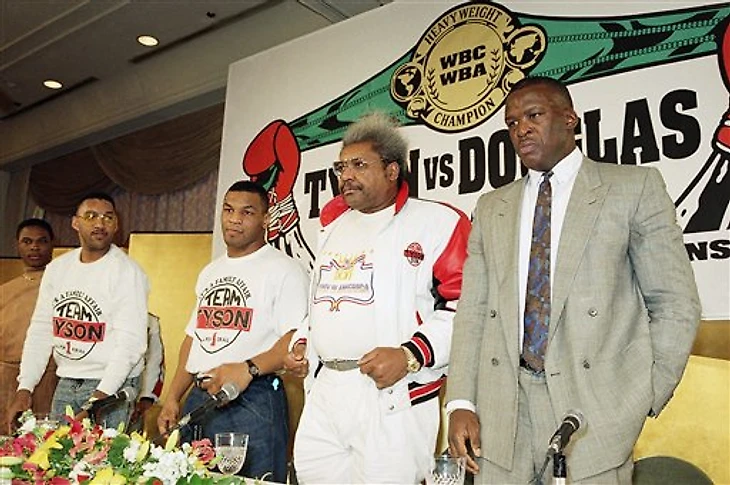 Дон Кинг уже кривляется на ринге, размахивая своими любимыми американскими флажками. Он по-отечески приветствует Джеймса Дугласа, а сам думает, как бы этого неуклюжего верзилу не отправили в нокаут с той же скоростью, с какой Джо Луис положил на настил Макса Шмелинга много лет назад...