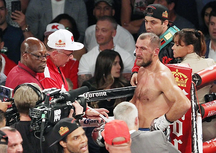 Но во время и сразу после остановки ни Сергей, ни его менеджер Эгис Климас не выказали жалоб на преждевременное завершение боя. Как надо возмущаться, показал за пару часов до этого Крис Мартин, которого рефери снял с боя против Тремейна Уильямса. Мартин сказал по рингу как бешеный, протестуя.