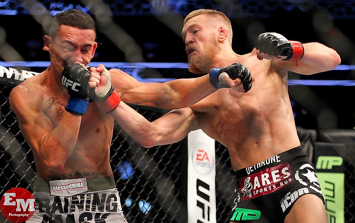 Первые полтора раунда МакГрегор дерется в своем фирменном стиле – полный контроль боя с помощью нестандартных и блестяще исполненных ударов. Конор попадает апперкотами, бьет ногами в прыжке и старается поглубже всадить собственную пятку в подбородок Макса – не бой, а сцена из фильма Брюса Ли. Во всех этих атаках Конора-шоумена не меньше, чем на самых знаменитых его пресс-конференциях. Ему одинаково важно производить впечатление и на оппонентов, и на зрителей. При этом, как всегда Конор ведет двойной бой – бьет и обманывает Макса и постоянно осыпает его саркастическими репликами, раздражая, отвлекая и сбивая с настроя.
