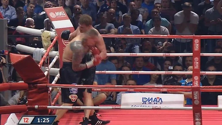 Во втором раунде Поветкин смотрится лучше. Александр работает очень хорошо. 20-18 Русский Витязь лидирует.
