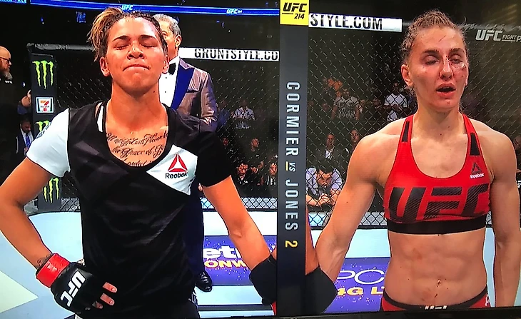 Кёрран проиграла, но продемонстрировала невероятное желание победить. Да, боксёр она так себе и в борьбе ничего не показывает - но зато какая мотивированная и злая. Не забываем и о том, что народу такой острый бой понравился - могут оставить американку в UFC ради зрелищности.