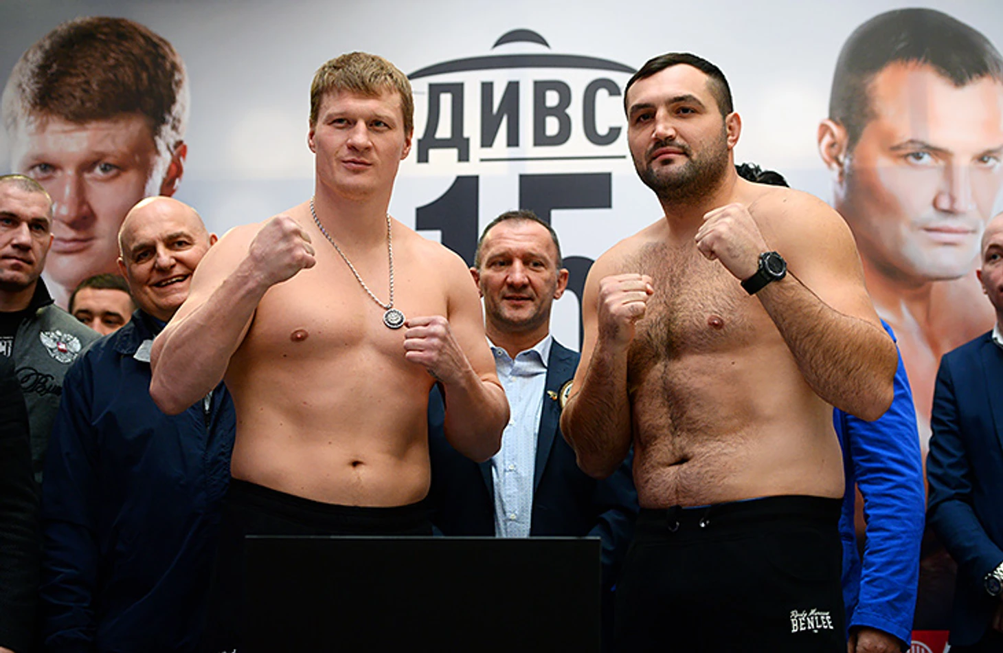 Российский боксер показал на весах 101,15 кг. Вес его соперника Кристиана Хаммера составил 116,3 кг.