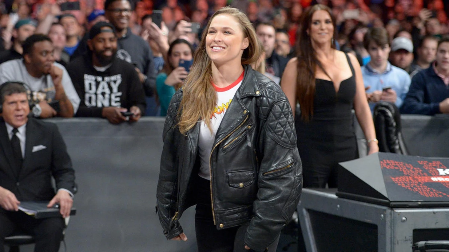 Ну, и немного про само появление: бывшая чемпионка UFC вышла в аттирке (прим. индивидуальная футболка или внешний вид каждого рестлера) покойного Родди Пайпера. Раузи неоднократно в интервью говорила, что выросла на матчах и фильмах легенды рестлинга, поэтому выбор внешнего вида был обусловлен уважением к традициям WWE. После прохода с рампы на ринг Ронда показала и двум чемпионкам, и победительнице Королевской Битвы, что она будет на Wrestlemania, после чего спустилась к комментаторской панели и пожала руку дочке босса WWE, обозначив своё положение в компании.