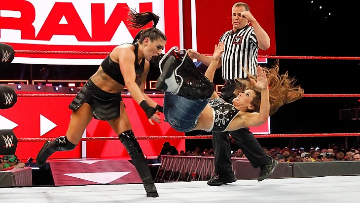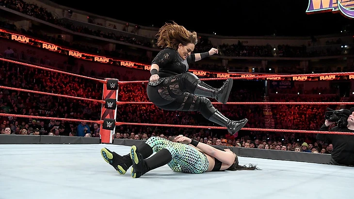 И здесь случилась неожиданность: спасти Микки Джеймс вызывалась чемпионка RAW Алекса Блисс, с которой они когда-то работали вместе на SmackDown. Возможно, это простой расчёт с целью привлечения союзников в ELimination Chamber-матче, а может и какие-то изменения в характере мисс Блисс.