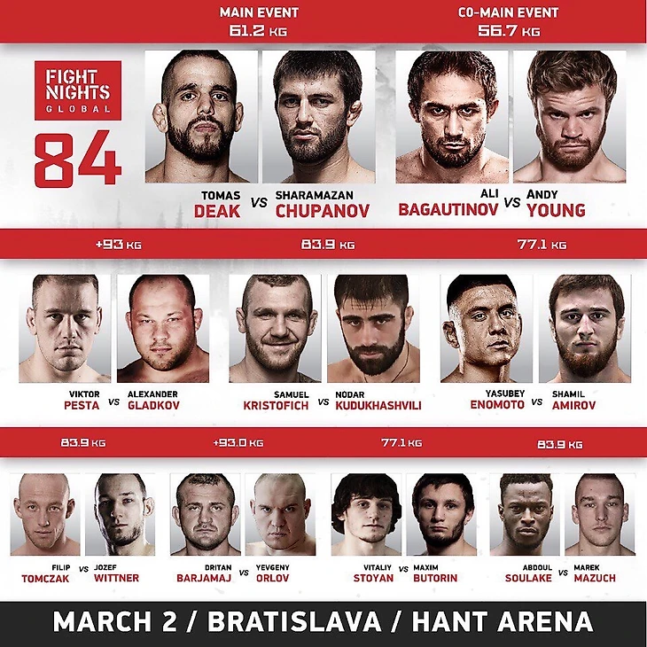 Уже сегодня в Словакии в городе Братислава состоится очередной турнир компании Файт Найтс. Страсти по предыдущему турниру все ещё кипят и, кажется, в предыдущем посте я немного угадал развитие событий. Вартан Асатрян вступил в конфронтацию с Али Багаутиновым, бойцы обменялись колкостями в соц сетях и стали на шаг ближе к поединку между собой. С другой стороны Ризван Абуев уже вызывает Вартана на реванш и в их противостоянии также далеко до точки. Во всей этой ситуации побеждает Тайсон Нэм, который может остаться в стороне от склок и спокойно получить шанс побиться за пояс с Тагиром Уланбековым. Но вернёмся к Али Багаутинову и начнём разбор поединков предстоящего турнира.