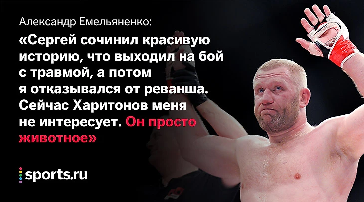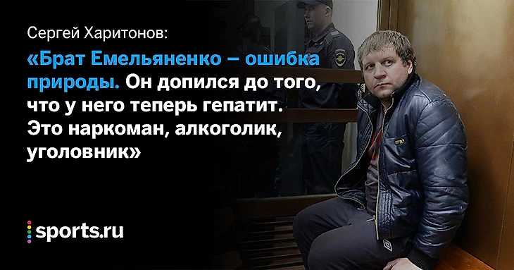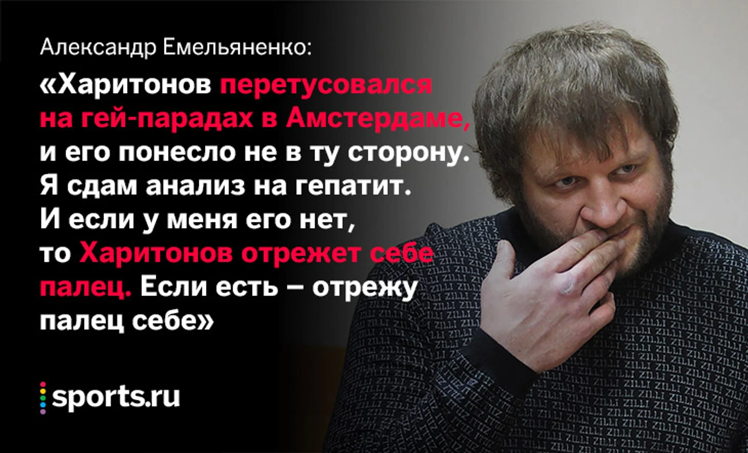 Словесная битва идет уже 7 лет.Сергей Харитонов и Александр Емельяненко – одни из лучших русских бойцов ММА. Особенно хороши они были во времена выступлений в Pride. В 2006 году они там даже подрались, и этот бой – один из лучших в организации. Победил Емельяненко, хотя шанс был и у Сергея.После единственной встречи в ринге начался ад. В 2011 году, перед боем Федора Емельяненко против Дэна Хендерсона, Сергей Харитонов сказал, что Дэн – слишком слабый соперник для Федора. Александр заступился за брата.Харитонов не отмолчался и в следующем интервью рассказал, что Александр болен гепатитом С. Серьезные промоушены вроде UFC и Bellator не берут бойцов с таким диагнозом: есть риск заразить соперника кровью.