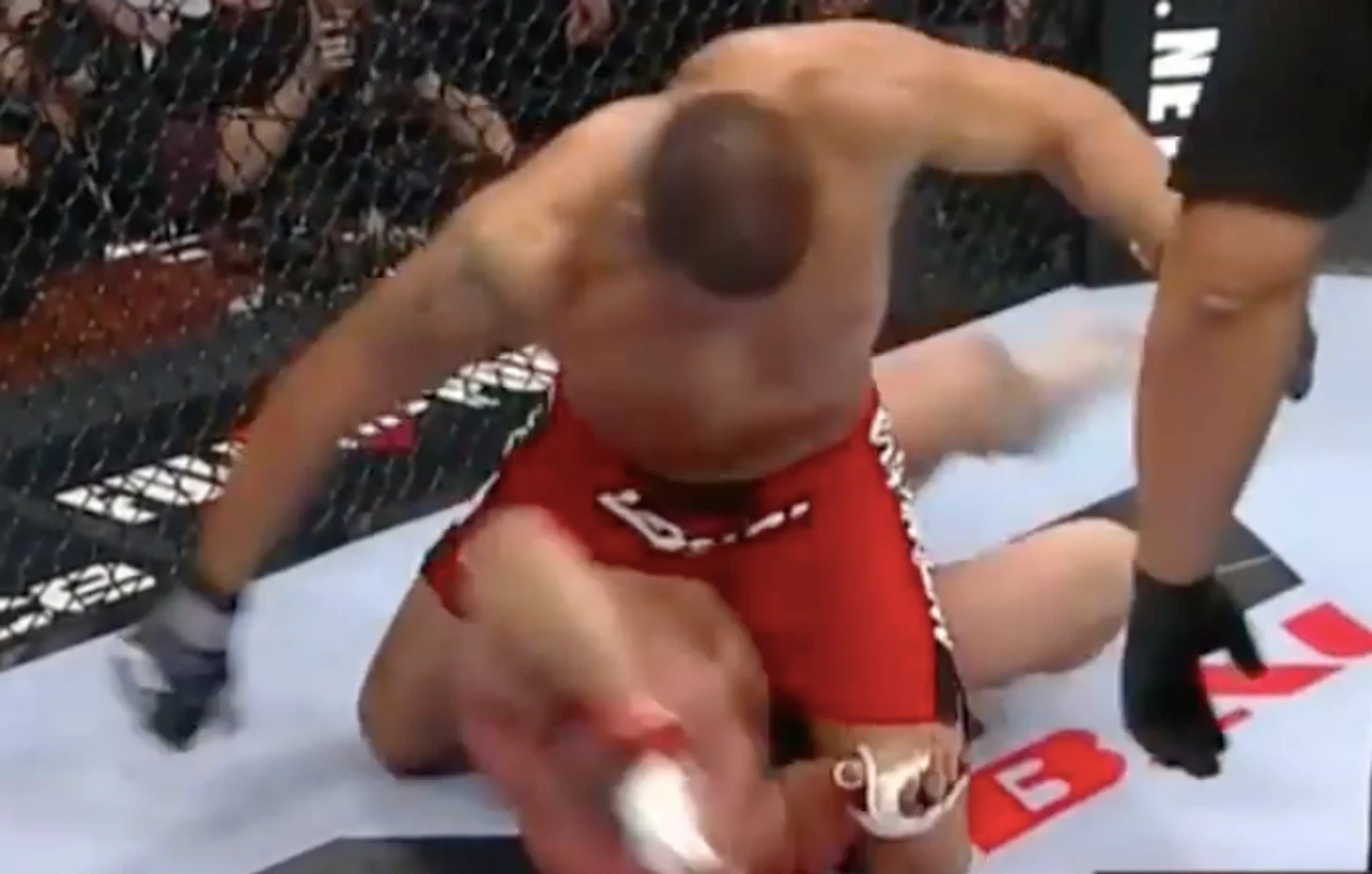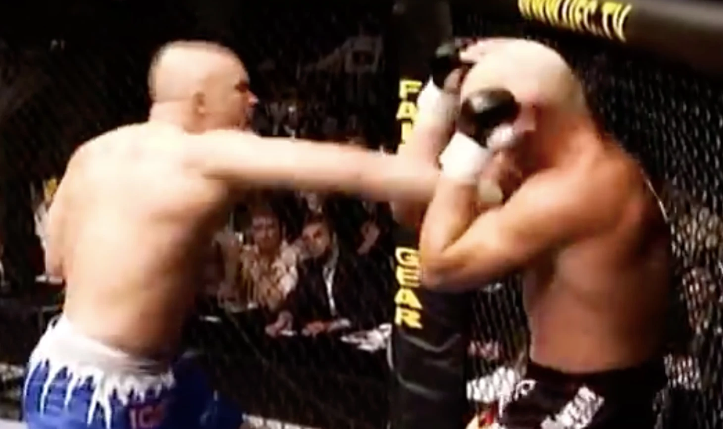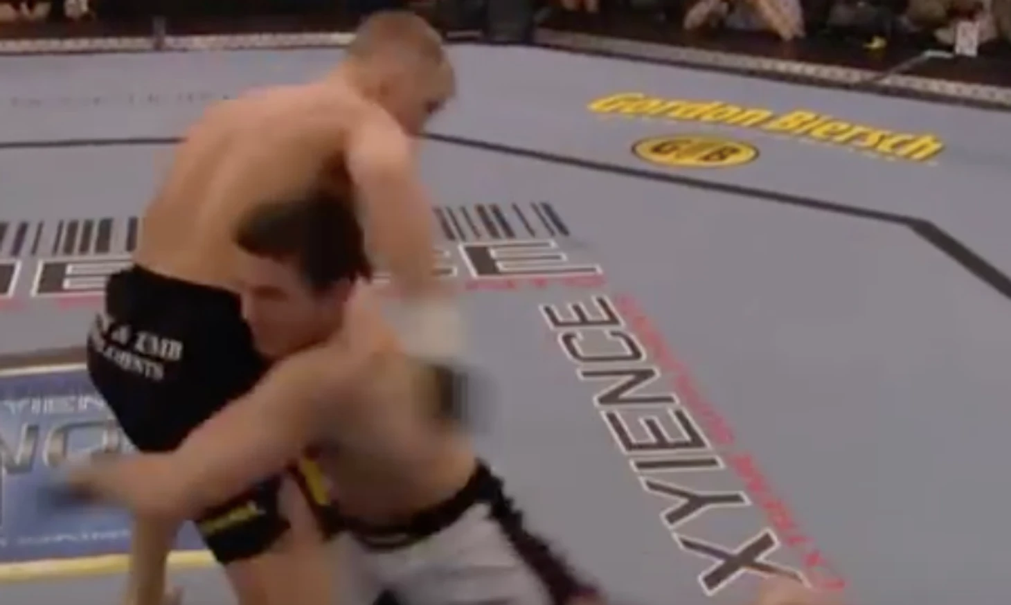 Митрион успевает немного сместиться и смягчить удар. Против Федора помоложе такое бы не прокатило. Оба бойца упали, но Мэтт поднялся быстрее и добил Емельяненко.