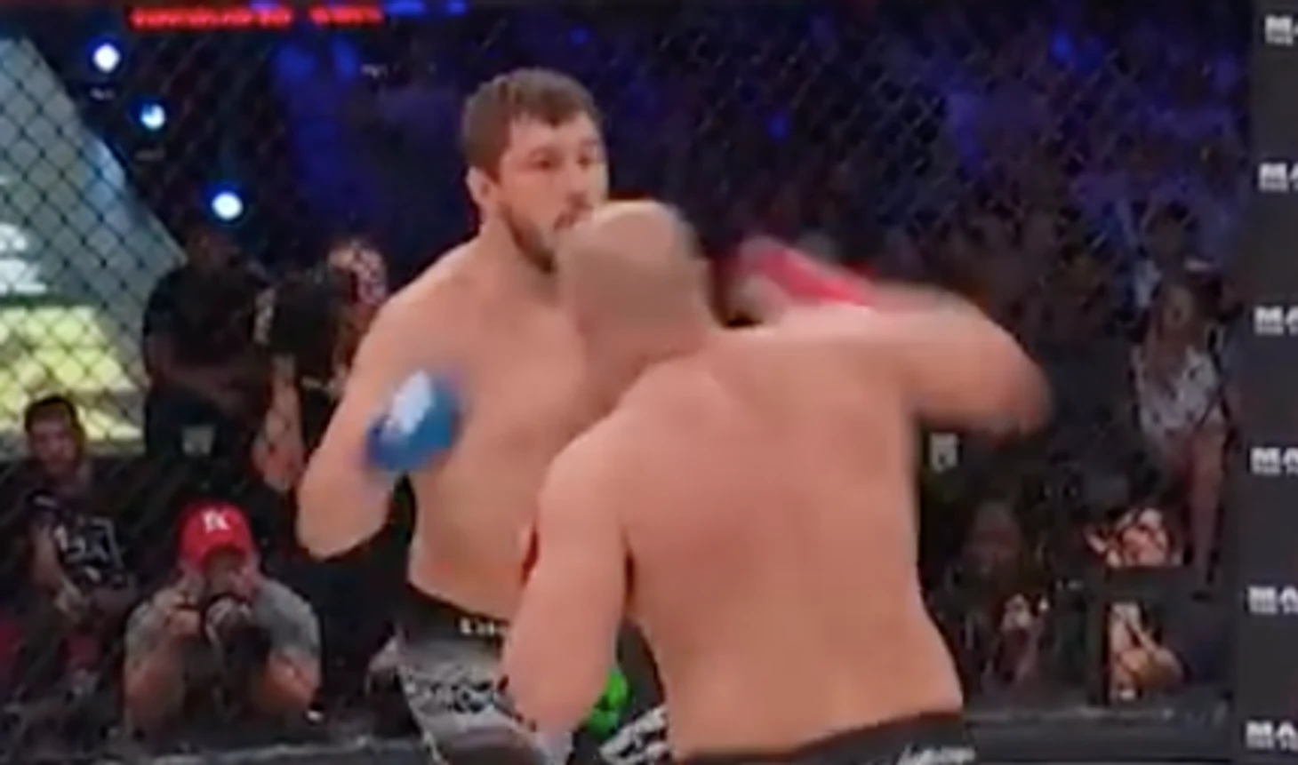 Очень здорово под удар ныряет Чейл Соннен – боец с сильной школой борьбы, который вместе с Федором участвует в Гран-при тяжеловесов Bellator.
