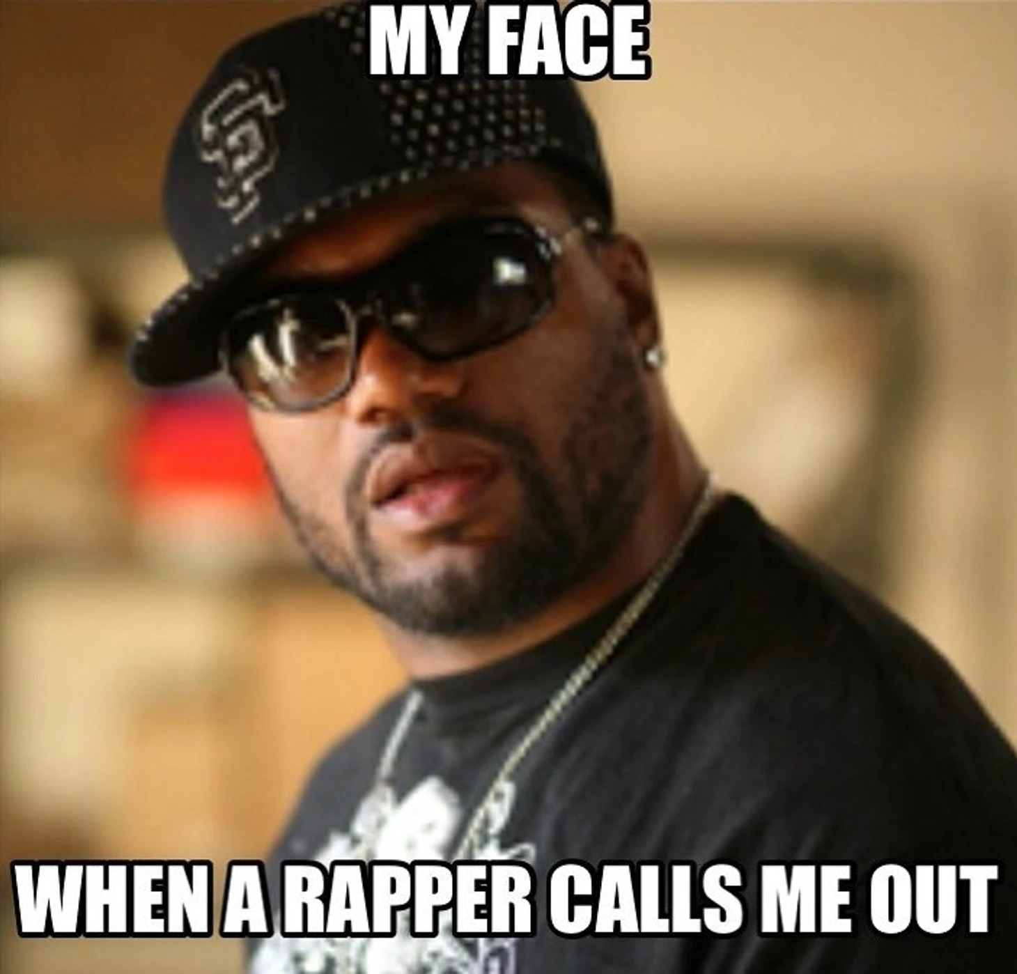 Квинтон Джексон заметил этот пост и ответил потенциальному сопернику мемом «Мое лицо, когда меня вызывает на бой рэпер».